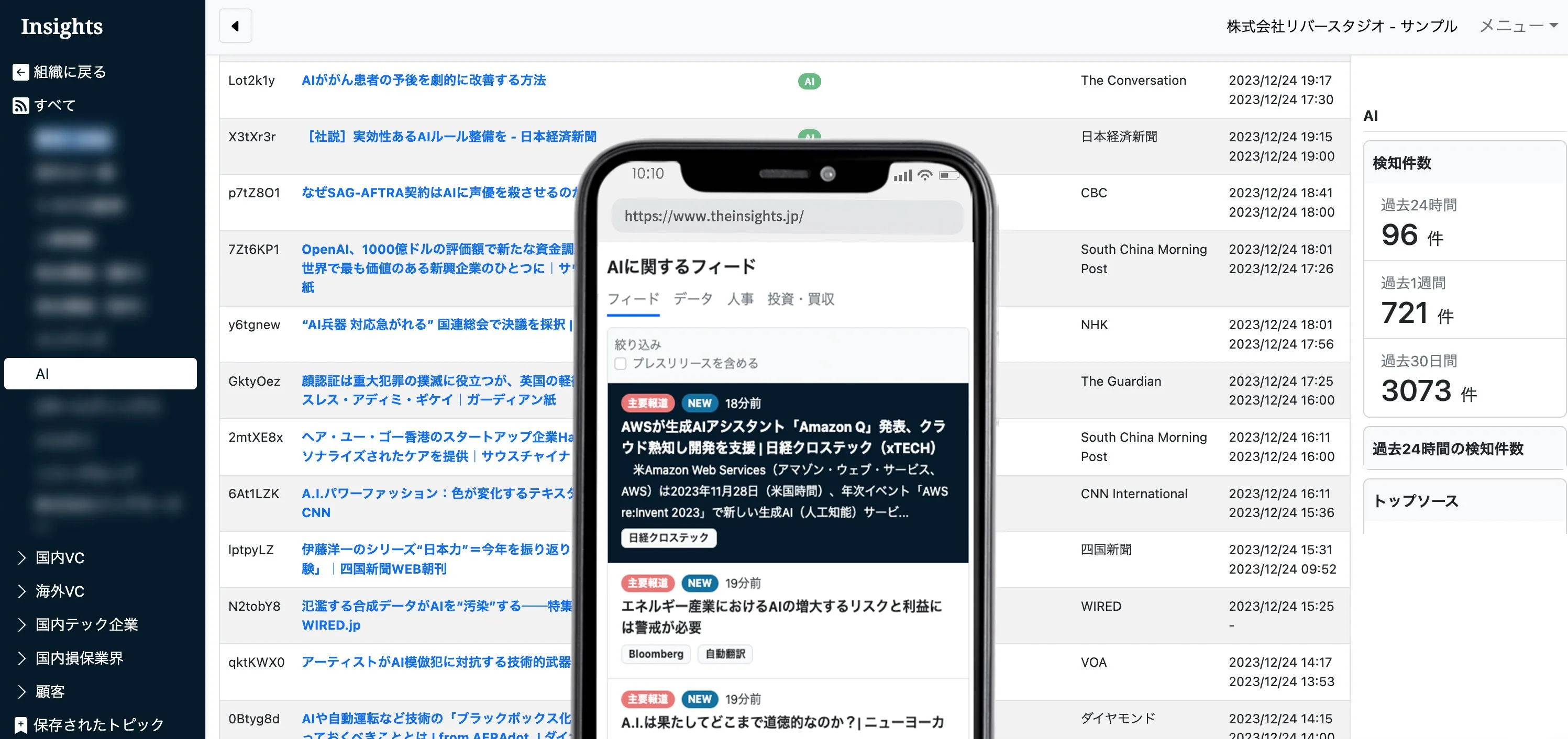 その名の通り、ユーザーがビジネス上の意思決定に役立インサイト(=洞察)を得ることを目的として開発されたサービスで、「AIによって最適化された新しい情報収集」というコンセプトを掲げています。